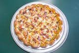 Buffalo sauce, pizza cheese, chicken, banana peppers & onions. Served with choice of ranch or Bleu Cheese on the side.